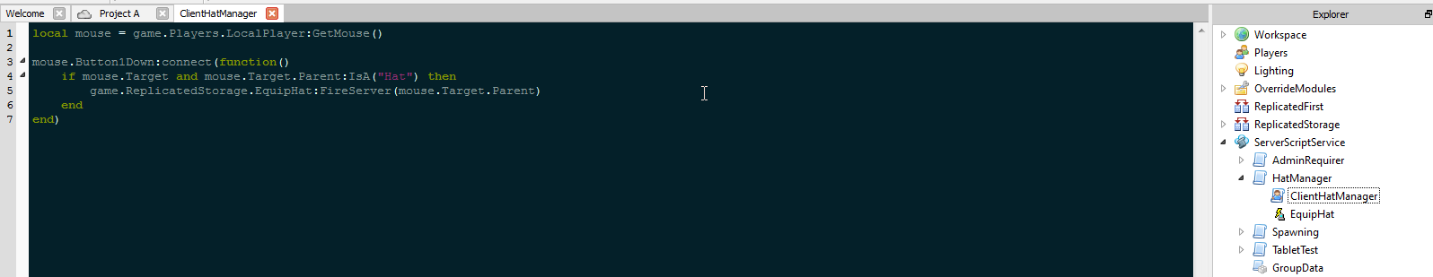 Now I’m able to see which remotes I have access to from the local script editor. I don’t have to go back and forth between scripts to figure out which remotes I have, and it’s clean because remotes are in the scripts that use them and not bundled in the ReplicatedStorage.