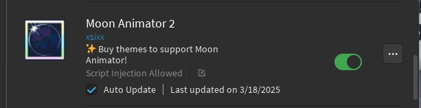 Hmm, the plugin was updated recently so its not possible that Roblox restricted access to updating the plugin, you might just have to wait until Moon Animator is due for an update. Or maybe uninstalling and re-installing, but i don’t know if you will have to pay to reinstall.