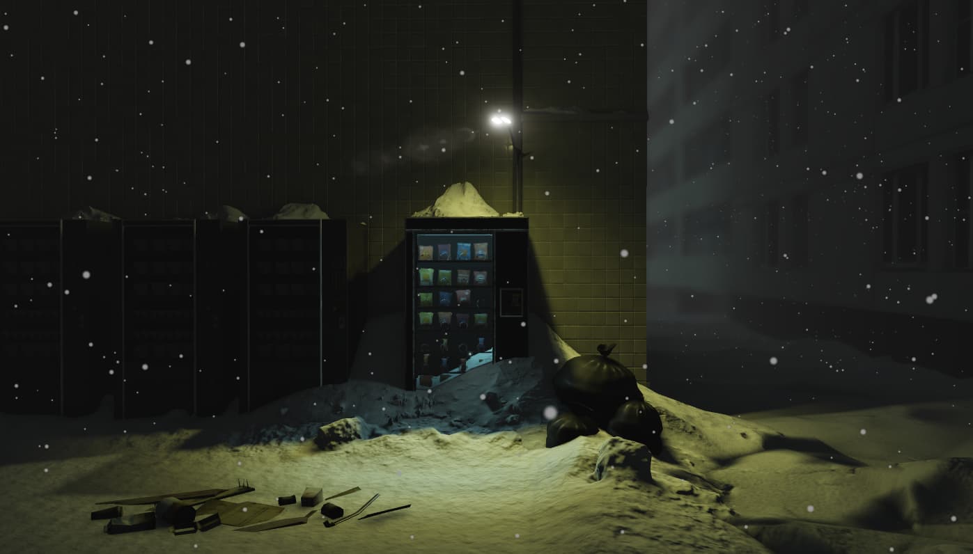 - The color of your vending machine is dark which makes it blend into the dark background.