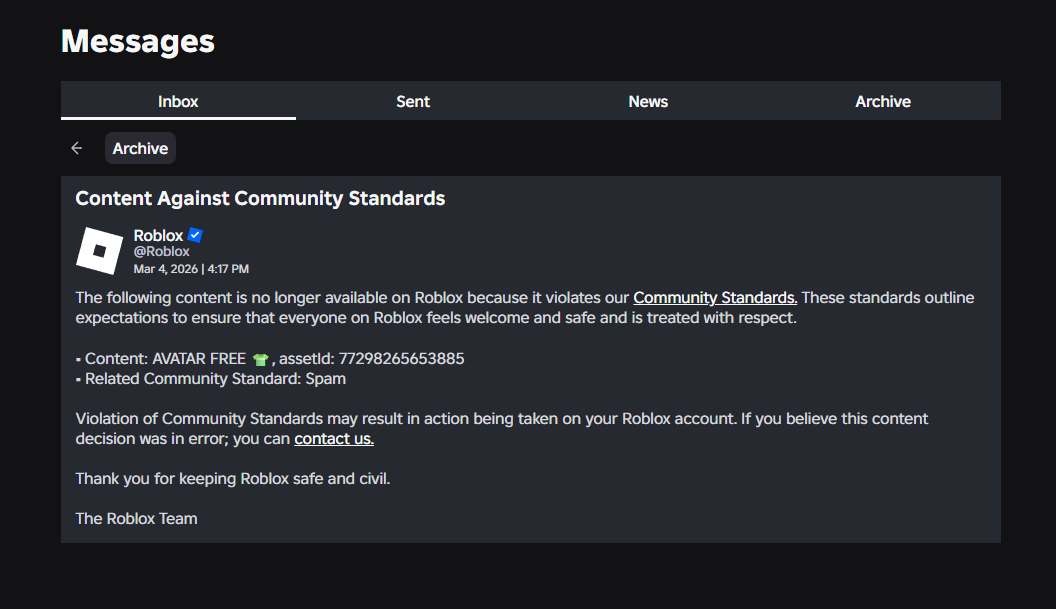vague titles like that usually will get your game taken down because it’s equivalent to naming a game “free robux” and the ai likely picked it up as a scam game