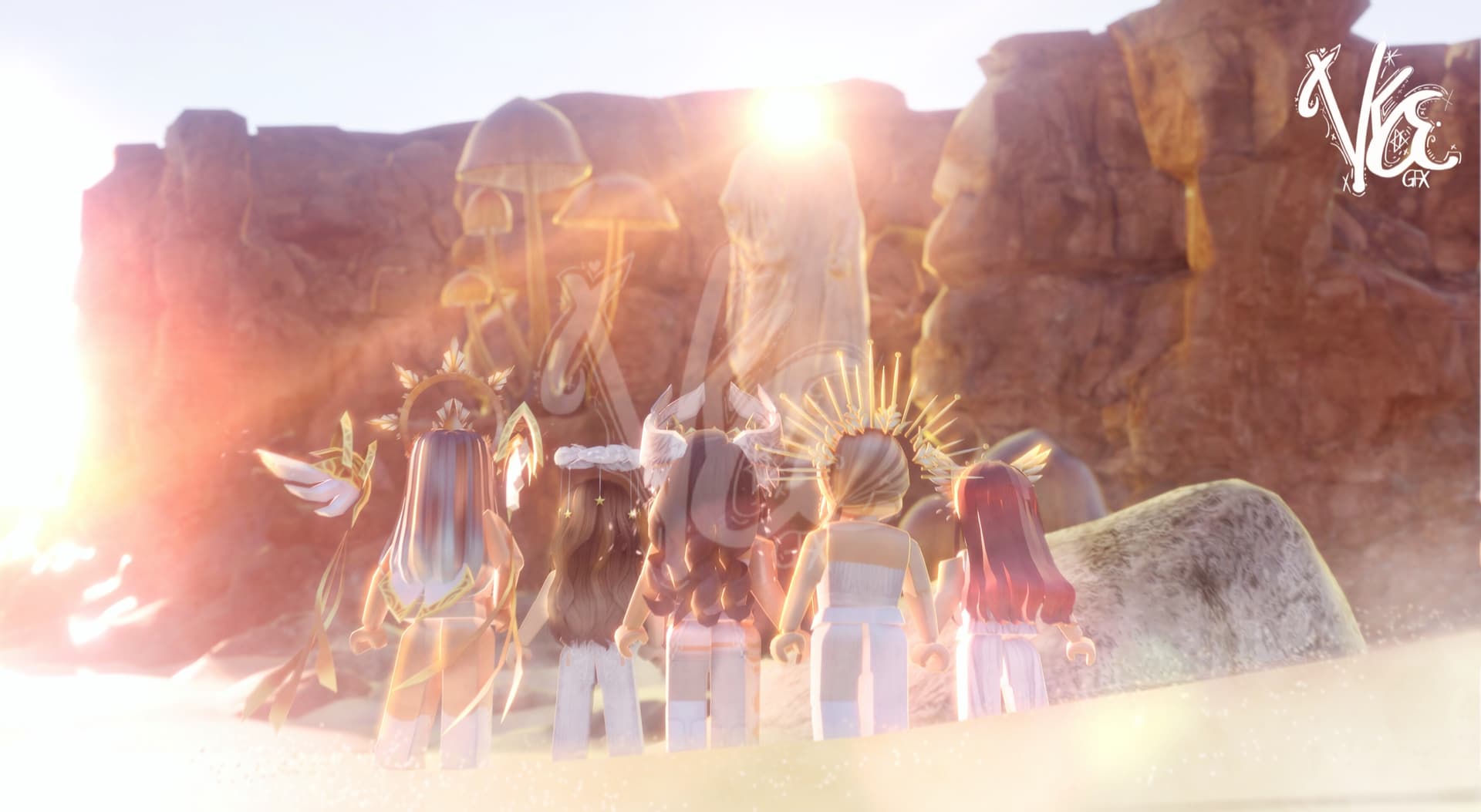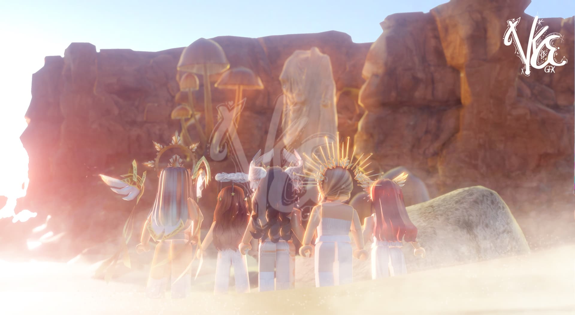 too bright, posing is very bland, background looks very unrealistic especially that weird statue and mushroom or something, cliff face is fine except background doesn’t blender and the sand doesn’t fit in with the rocks add more rocks and a little grass, and have the angelic gear or whatever be less bright and more stand out maybe