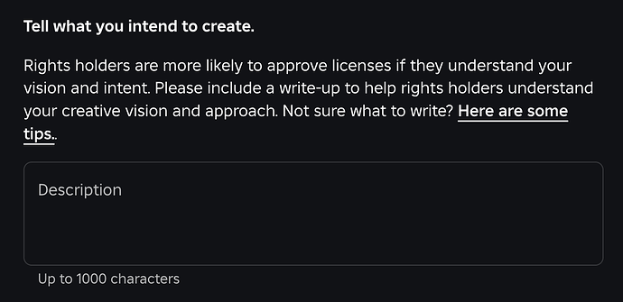 Alongside the new IPs, we’ve launched an improved Pitch Feature. IP Holders are more likely to approve licenses if they understand your vision and intent. So, when applying for a license, you can now include a write-up to help IP holders understand your creative vision and approach. Not sure what to write? Here are some tips.
