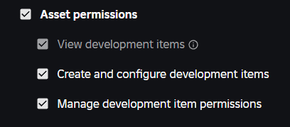 Manage development item permissions