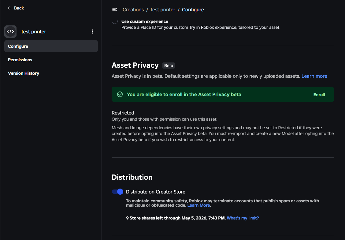 It is also worth clarifying that opting in to asset access control should not impact accessibility of one’s models as those are restricted for everyone (and have been historically even before the asset privacy update), aside from those put on store.