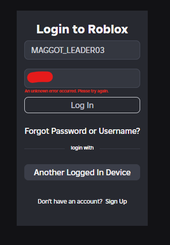 - You’ll now get an “An unknown error occured” when attempting to log in
