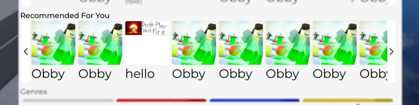 But, it should update with obbies you will like as you interact with it more, play the obbies recommended, like them, favourite them etc etc. Every obby that is loaded by it’s owner after this update will have a chance of showing here. Let me know if it recommends anything cool!