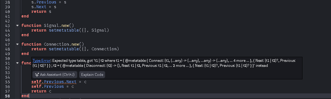 -- self.Previous.Next = self.next (Type Error: It could be a nil.)