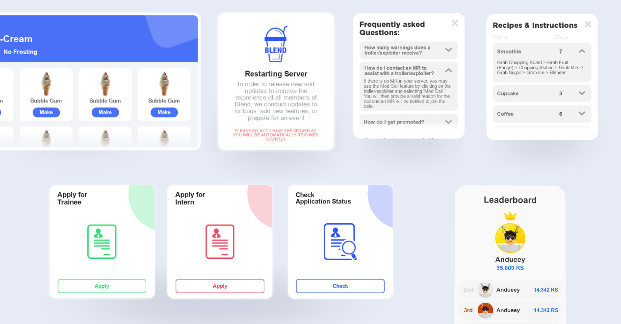 Hey, I’m a self-taught freelance UI-Designer and UI-Animator. I specialize in minimalistic and cartoony UI. I’ve been doing UI for over a year and worked for small and big groups such as Blend. Any questions feel free to drop me a message on discord.