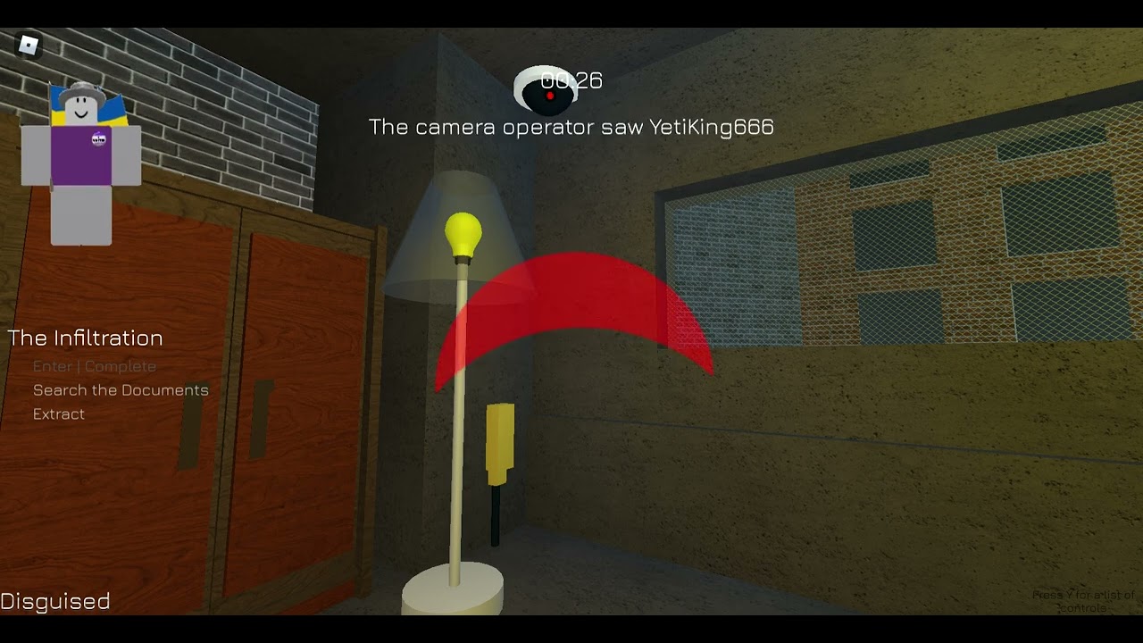 Camera Detection. One of the mechanics from my game, Retribution. You can also see objectives, a timer and a menu prompting players to restart/try again