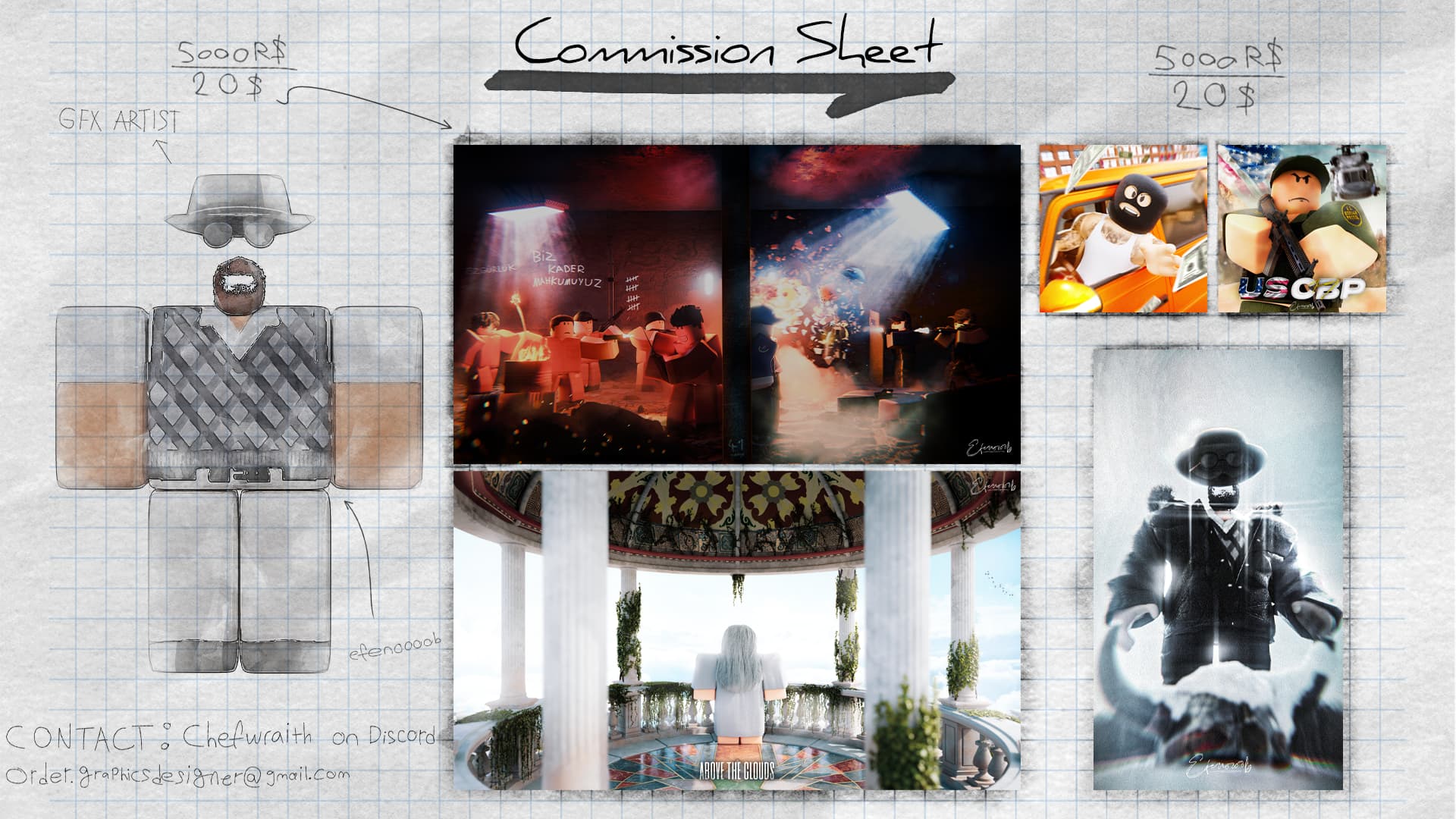 All of my services are offered for 5,000 Robux or 20 US Dollars.