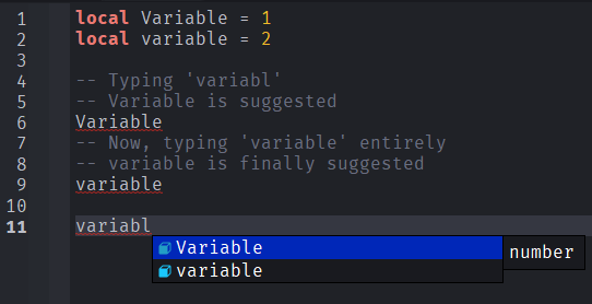 Currently i don’t think u can do much about it except the underscore method tbh roblox should indeed make the type suggestions based what u write, so if u write capital the capital one comes if not the opposite