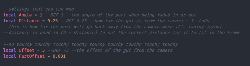 local Offset = 3 --DEF -3 --the offset of the gui from the camera