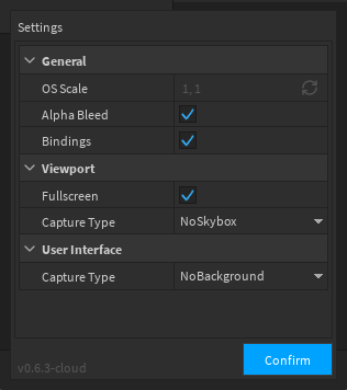 captureViewportandcaptureUInow returnnilupon failure without throwing an unhelpful warn in the output windowcaptureViewportandcaptureUInow use an options table which allows for much more granularity over capture results.- Optional