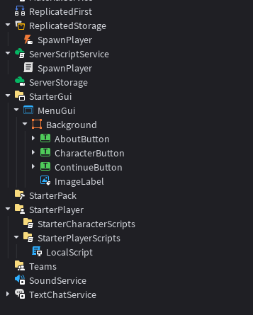 I’m trying to create a main menu for one of my games. The idea is to have the main menu use a camera part facing a mesh, with a few buttons displayed in the screen GUI until the player clicks the (Continue) button, which will then spawn them.