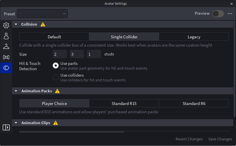 Everything can be toggled on and off within game.ServerStorage.R+Config