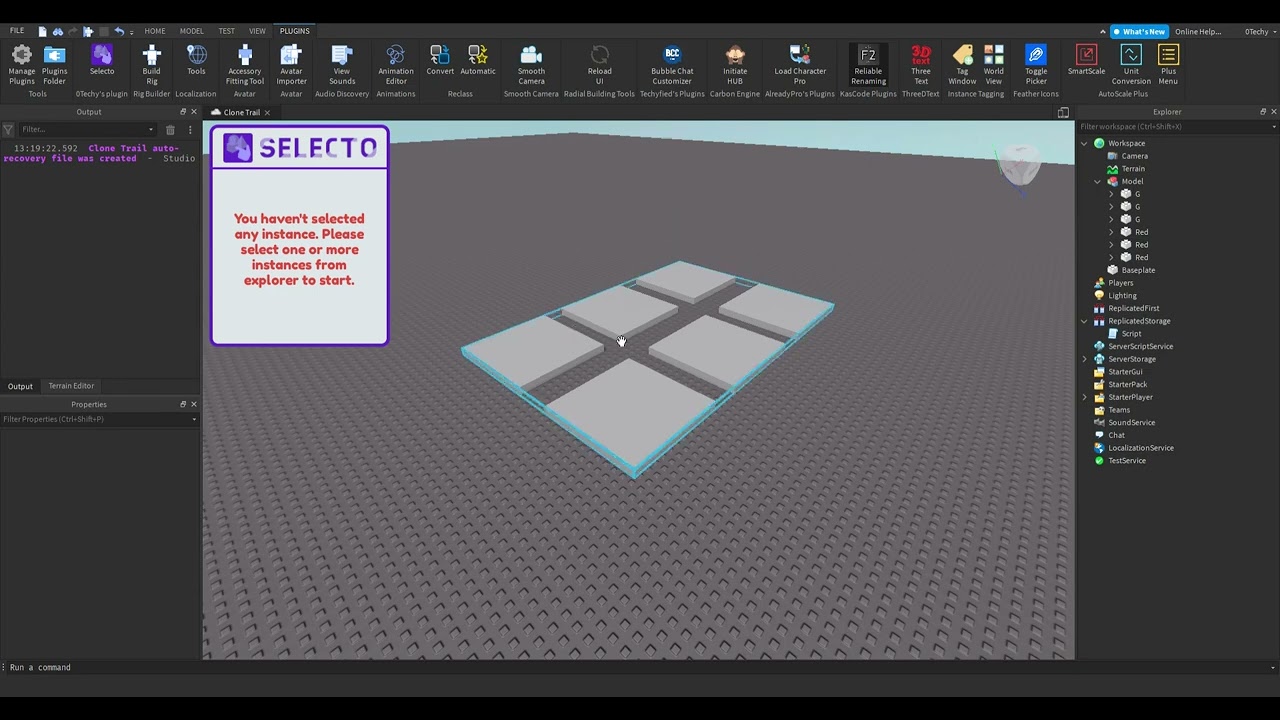 Selecto is a plugin which will help you select all matching class and name descendants of an instance. To make it work, you select an instance from Explorer and from the modern looking UI, select a Class or Instance and it’ll automatically get all descendants of the instance you selected and look for the specific class and select all of them. If you often insert free models in your game and want to get rid of unwanted scripts, this plugin will be extremely helpful.