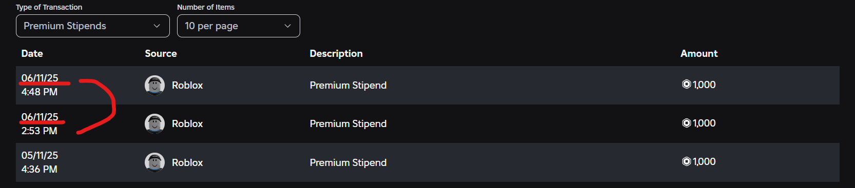 Today, my premium finally “expired.” I received the expiration email and the warning that all of my avatar items are at risk of going offsale, but when I checked the settings page and viewed my subscriptions, it looks like Roblox automatically resubscribed for me again, despite the settings page prior to the renewal saying it would expire today. I also received the Premium Stipend twice according to my transactions page, which is weird. I’m not sure if I was double charged for my premium because I let it draw from my account credit balance, but this is what I suspect happened due to this previous report. Really hope this whole thing gets sorted out, I can’t stress how worrying it is that my Premium could expire and every single one of my thousands of UGC items goes off sale, completely cutting off my income, and leaving me to have to manually put each and every one back on sale.