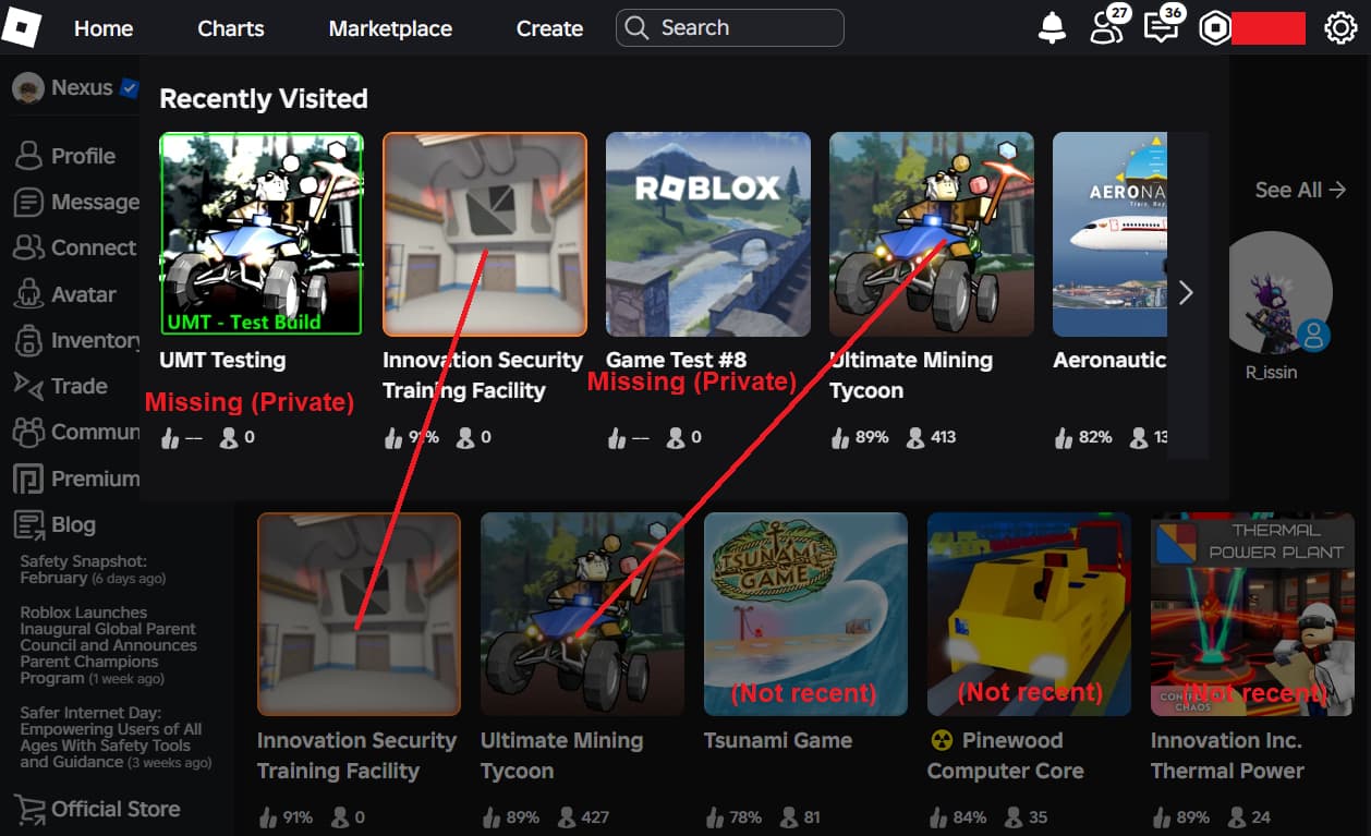 This issue isn’t new, but it is really annoying. Ultimate Mining Tycoon’s test game is something I frequently play to test, but since it isn’t public, I need to remember to go up to the search that does give me the latest things I played, including private.