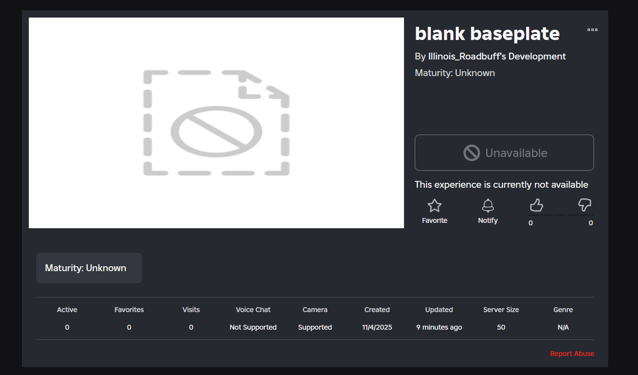 ^ Figure 3: Another blank game in Roblox shown as “unavailable” with a moderated thumbnail.
