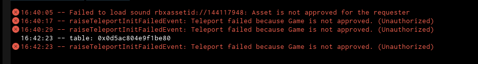 ^ Figure 5: Not being able to join a moderated game (also a blank baseplate) via TeamCreate.