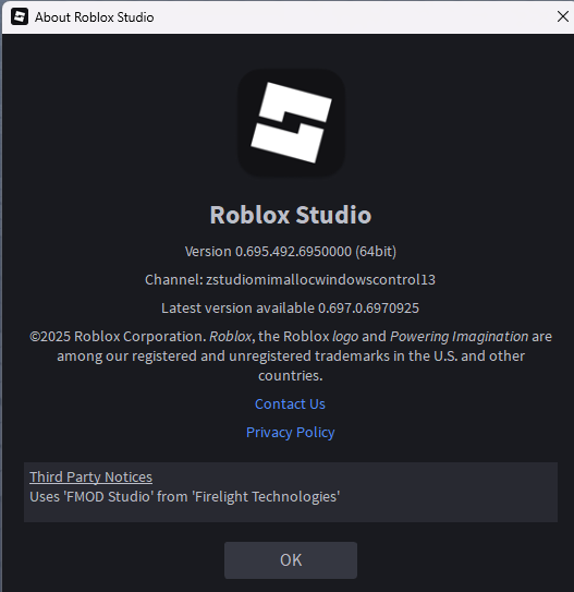 Roblox Studio Version: 0.697.0.6970925