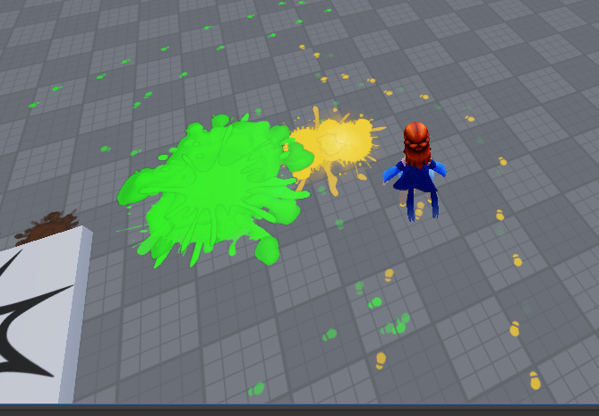 This is not just a blood system this is a puddle system. By rounding the droplets position using grid logic this algorithm grows puddles on the ground. By Raycasting It covers the limbs of characters the particle touches. If you step on a puddle you have footprints.