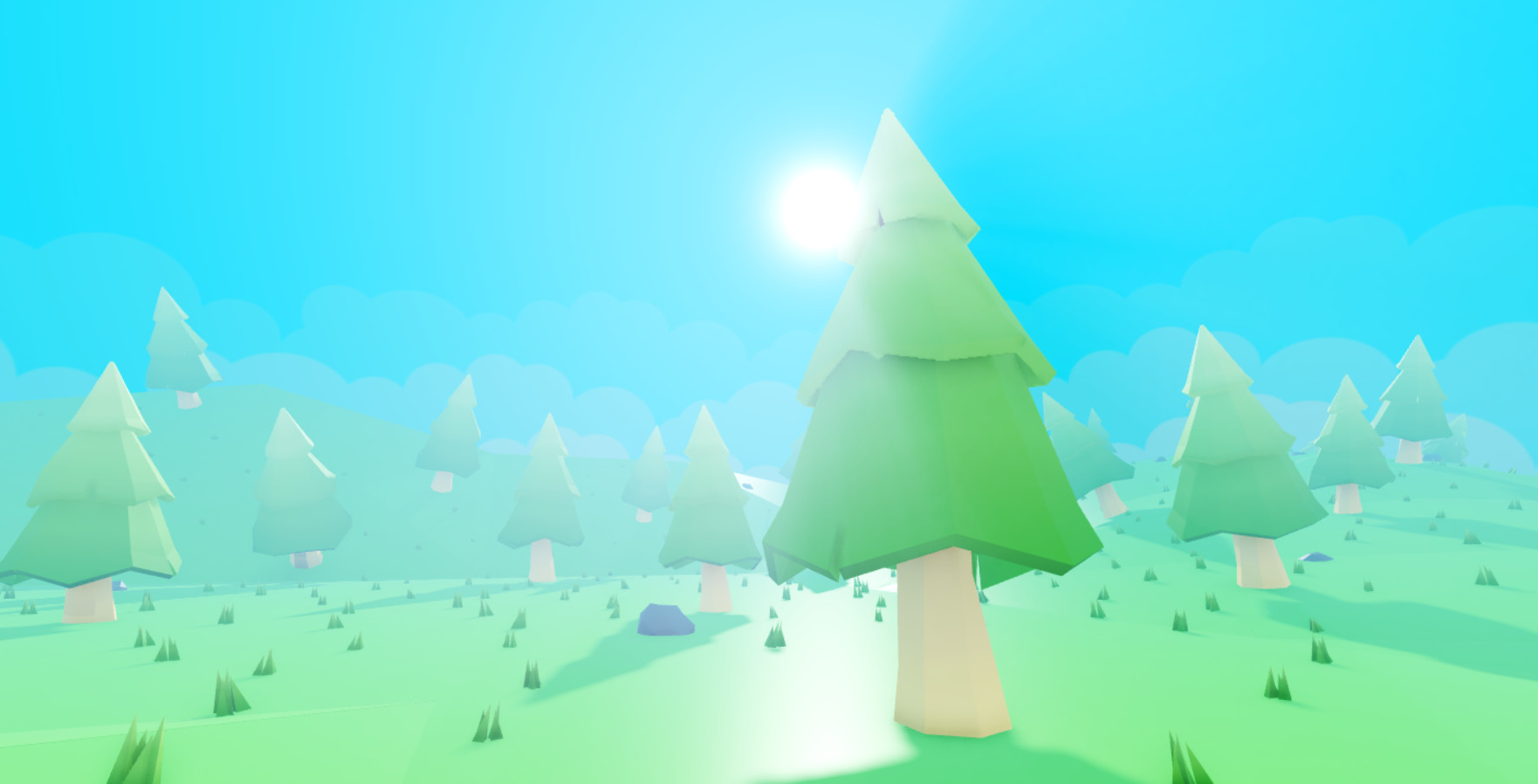 In this one, I made a basic forest. I used blender to model and texture the trees, rocks, and grass.