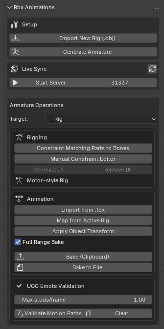 If you’re using 2.0+ of the plugin by Cautioned, then you can use Live Sync by connecting your blender to your studio via HTTPS service in the plugin, see Cautioneds GitHub here to learn how to use Live Sync properly: GitHub - Cautioned/Blender-Animations-Plugin: Addon for Roblox Blender Animation Importing and Exporting