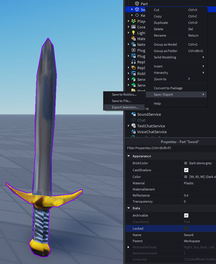 Once you’ve located the AnchorPoints, you should import whatever tool you want to be animated, for this example I’m going to be using a sword.