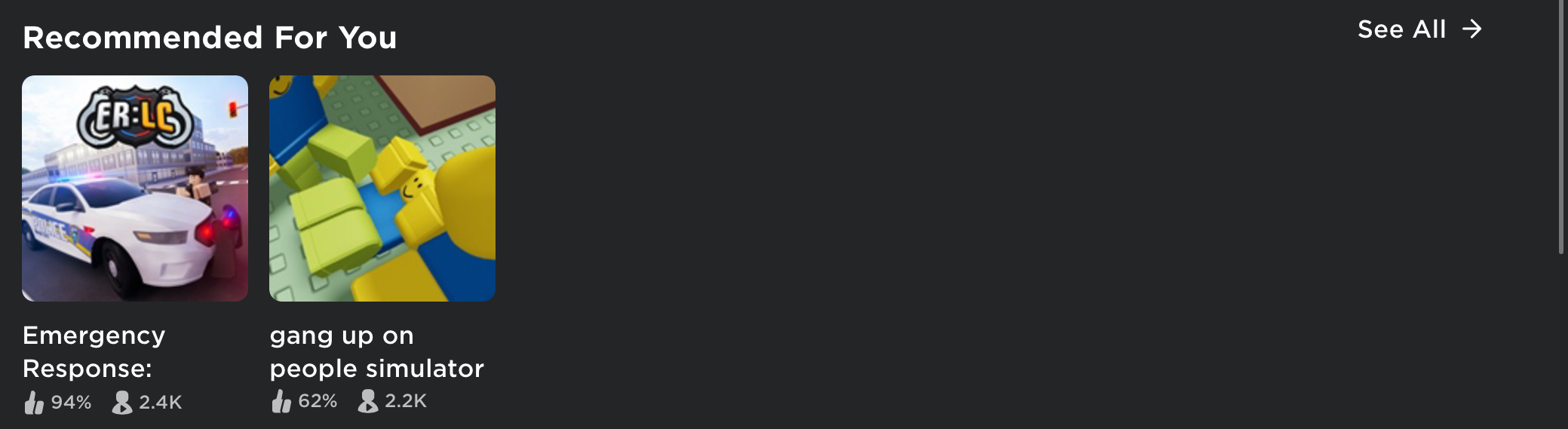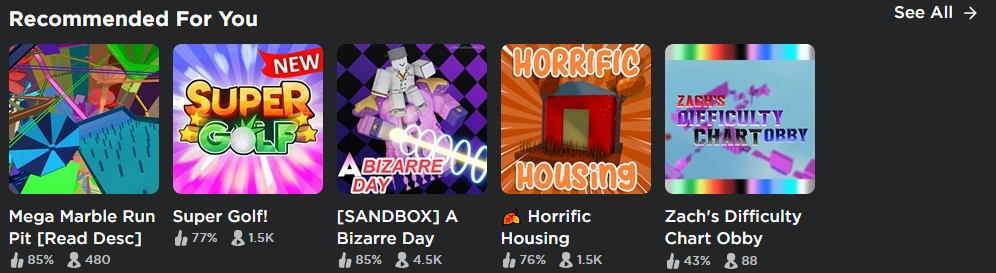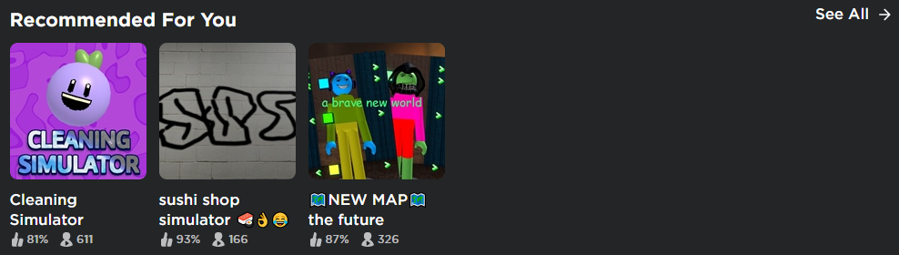 Showed no games once. Happens frequently so hope that roblox fix this issue quickly.