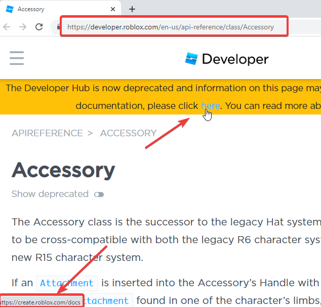 When clicking the click here link, the redirection to the page corresponding to the current subject should be done in the new documentation.