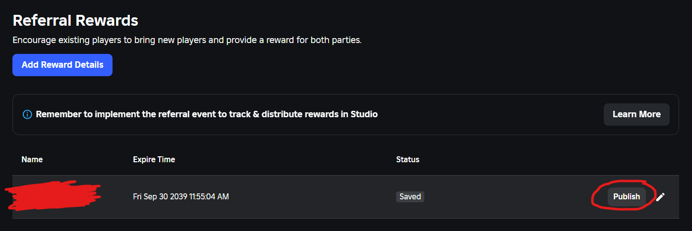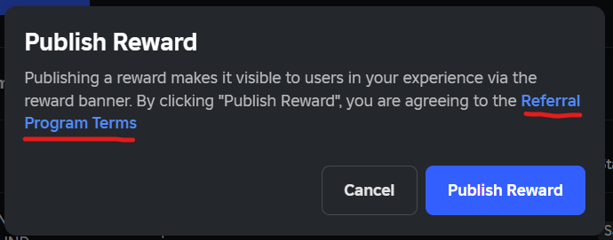 Page URL: https://create.roblox.com/dashboard/creations/experiences/1/referral-reward-details