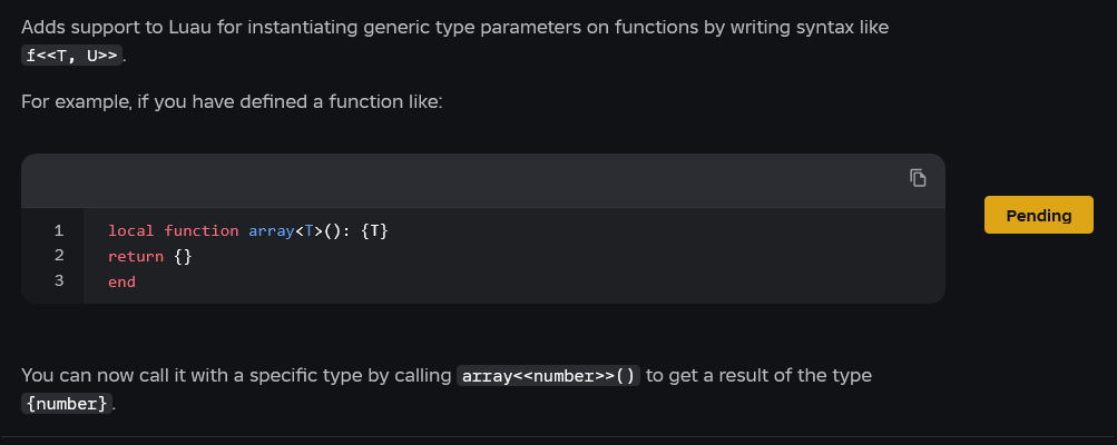 It would be beneficial for the team to begin providing Luau type solver updates in their own category separate from engine API updates as they are interleaved sporadically across improvements and fixes, because the way it stands it makes it hard to flick through all the release notes when looking specifically for type solver updates.