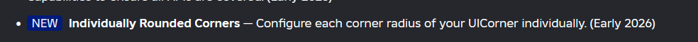 Everyone complains about no Drop Shadow, Blur, or individually rounded corners. But nobody complains about the inability to draw a triangle with UI Instances without using a jank trick using UIStroke (or suffer using a PNG triangle).