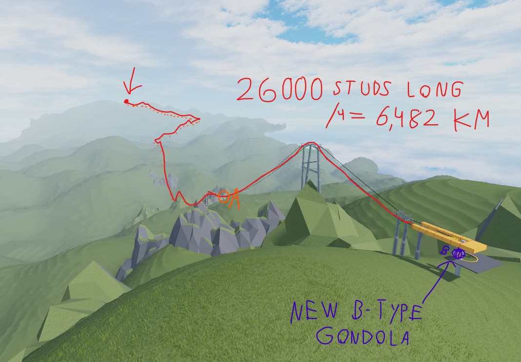 this is to visualize just how long the lift is. Placing the gondolas in the first place already took long enough (i built this lift in stages, and extended it over time. It has 3 right now and most likely will have more)