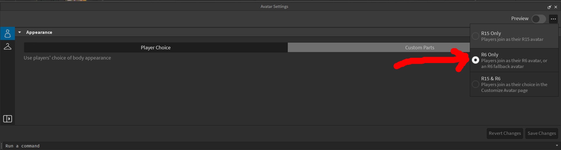 The Rig on the left is what I want to achieve and is what used to be the default but I have R15 limbs for some reason in R6 and I’m so skinny and tall and just what the hell? Like what is going on. I used to spawn in as the rig.