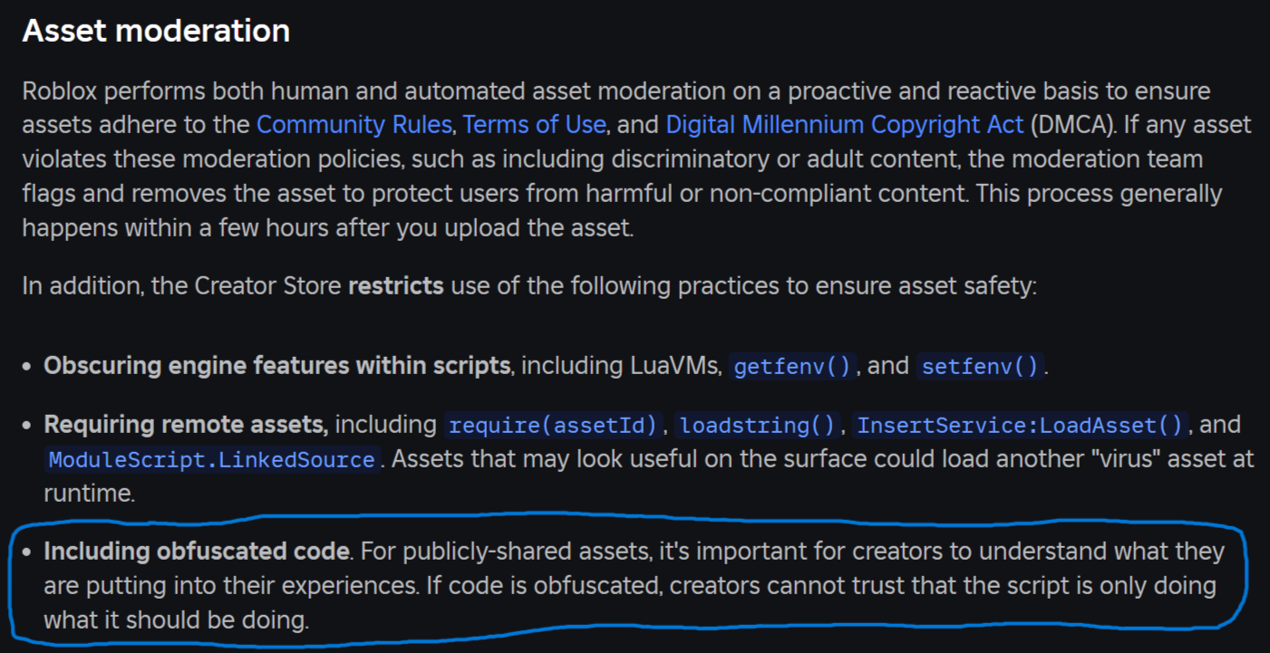 I cannot distribute it on the Creator Store after all of the work I put into obfuscating all of my Scripts and LocalScripts, because Roblox does not allow obfuscated code in public assets.