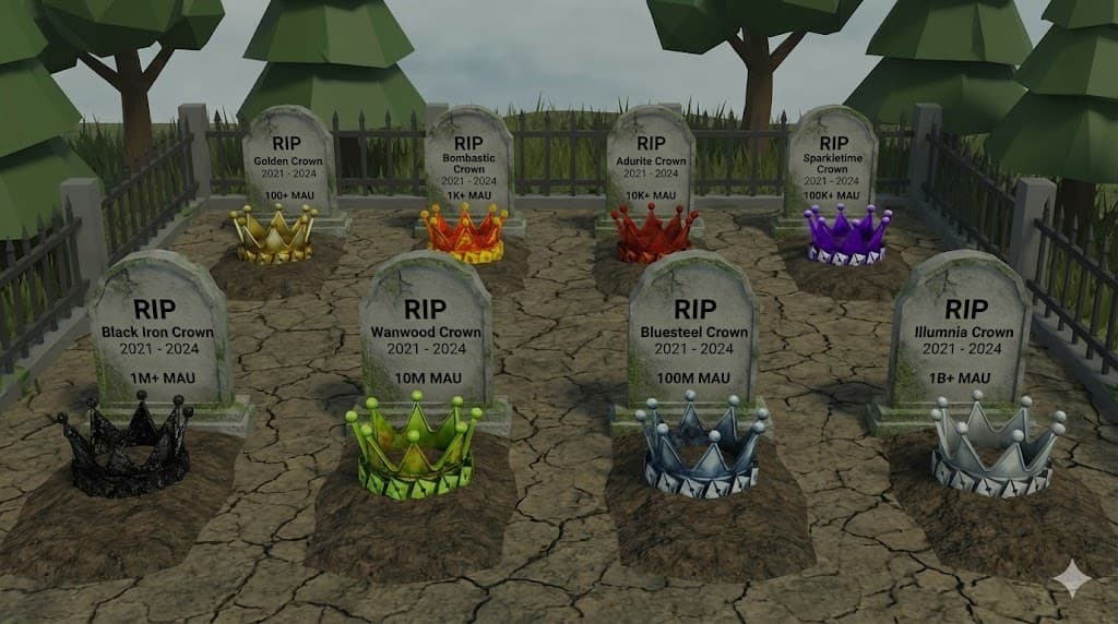 The ROBLOX developer crowns seem to have been discontinued, as we used to be promised for checking of eligibility for the visits every 3 months. Currently, I own a game running around 15k+ MAU visits, which did reach 100k MAU at a point. And so, logically, I should not just have the golden crown and bombastic crown (the 100 and 1000 crowns that I got 2 years ago) and should also have the Adurite (10k) and Sparkletime (100k) crown…