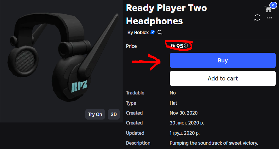 This item is offsale on the Roblox marketplace and could be obtained only by purchasing this item inside of the event experience for 99 Robux.