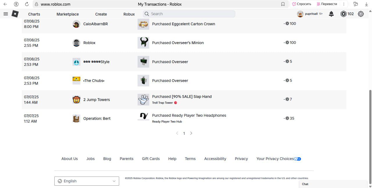 Then, after long six months I decided to purchase another item, BUT, it didn’t appeared in my Roblox inventory: