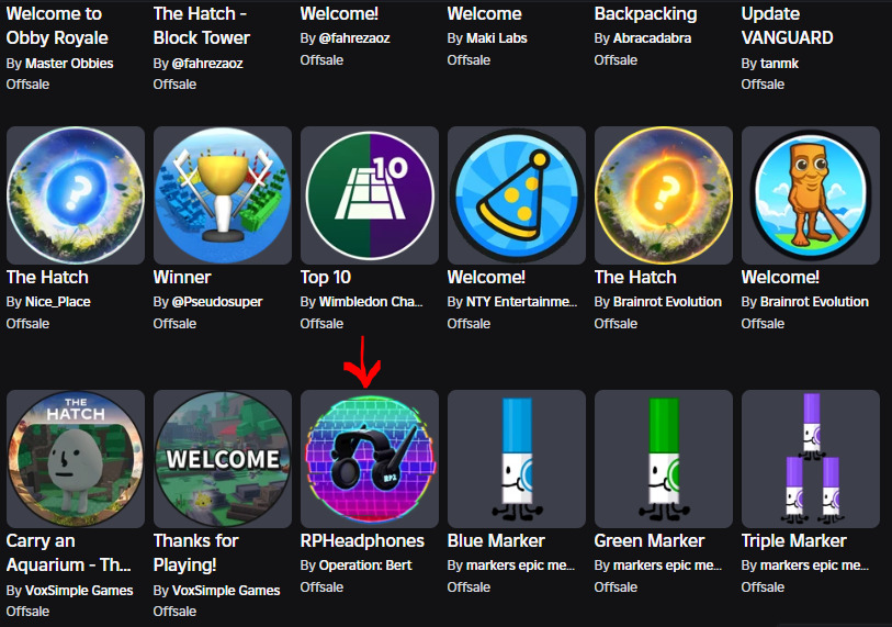 Obtaining these two badges above should’ve been award me with two items (which cost less in the hub than on the Roblox website by the way).