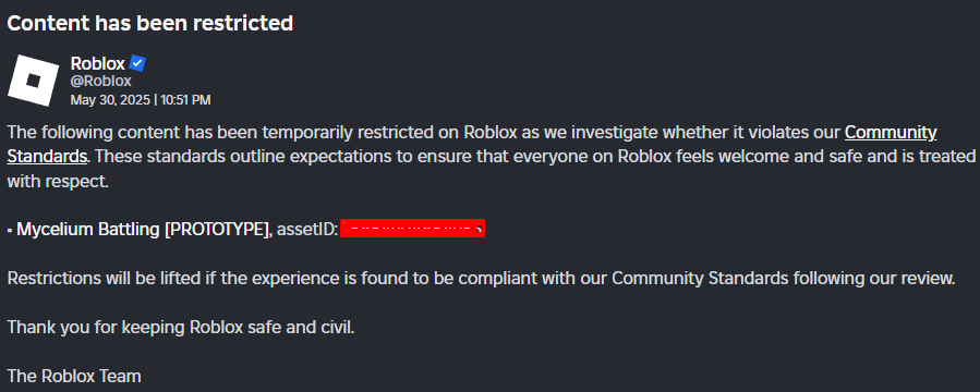 so roblox keeps restricting my game even tho it doesnt violate the tos and commnuity guidelines