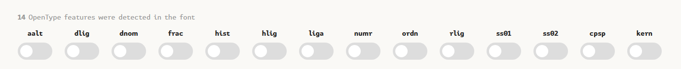 Even though the font supports many OpenType features, Roblox Studio only seems to recognize and apply