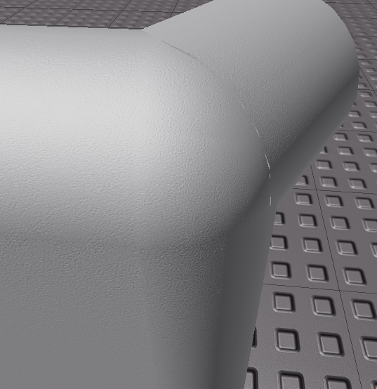 Because of the differences between the number of actual faces on the cross-section of the cylinder versus the sphere it’s impossible to create a seamless transition between the two meshes unless the angles at which they connect are multiples of 45 degrees (maybe even 15 degrees, but haven’t tested; either way it surely won’t be seamless with rotations smaller than 10 degrees).