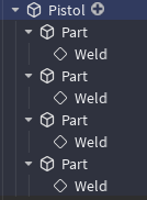 they are all parts and I used a plugin to weld them. The weld to the arm is scripted when you play