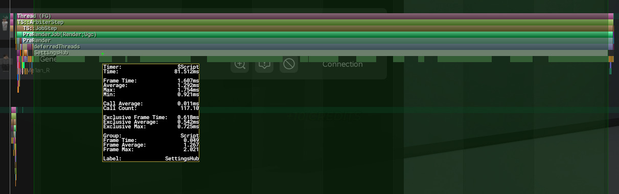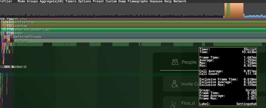 For whatever reason, it is especially bad in my experience that I am working on - it’s different to other roblox experiences and I can’t tell if it’s something I’m doing wrong.. All the spikes are from Roblox’s corescripts. (SchedulerHostConfig.default, SettingsHub, rarely ExperienceChatMain)