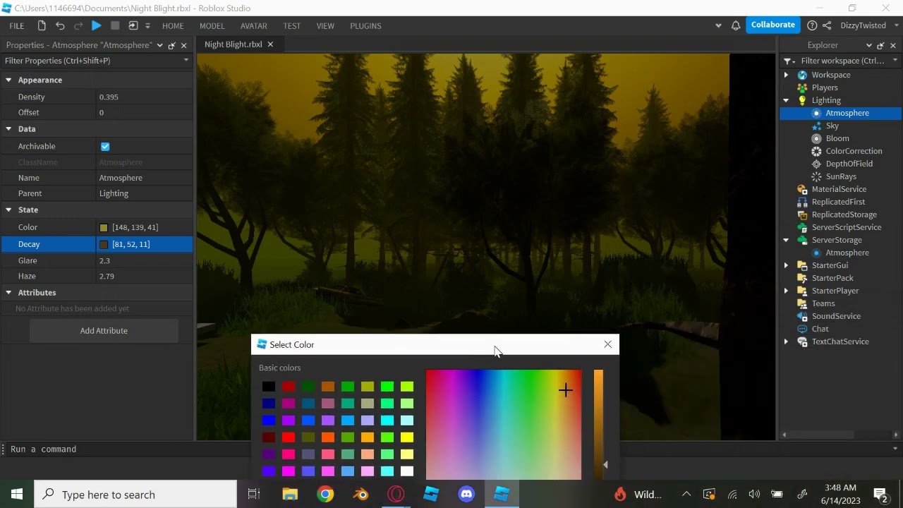 I made this lighting for the ambience of a foggy forest so that the player cannot see the background but also gets the feel for the ambience of the dark forest