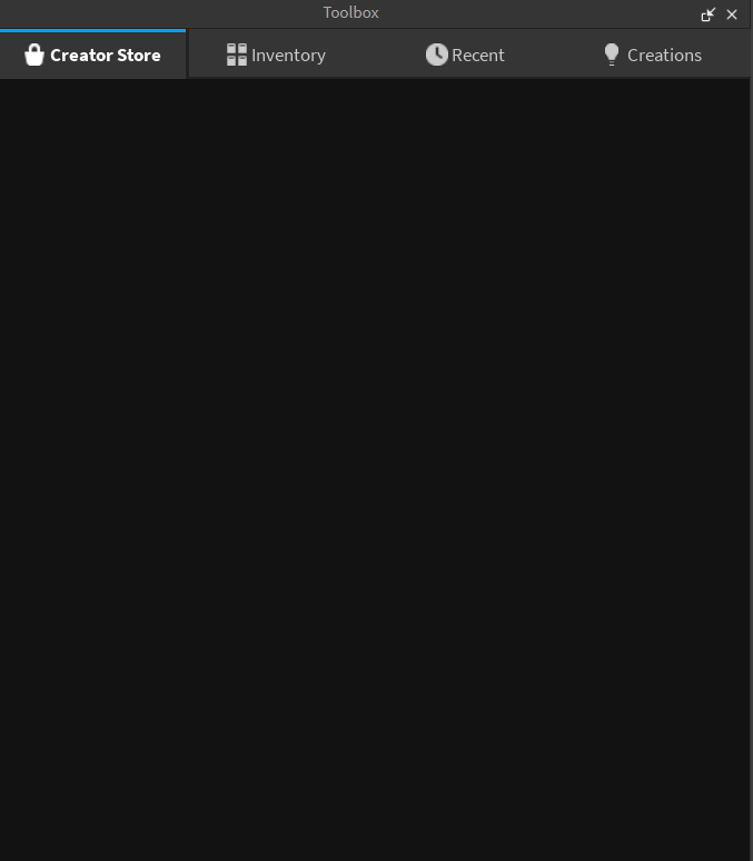 I tried to find icon inside the studio’s toolbox with prompt: “send message icon”, but instead of loading web page with search results toolbox’s viewport became dark. Other pages is loading fine after issue, but nothing you can do with “Creator Store” page