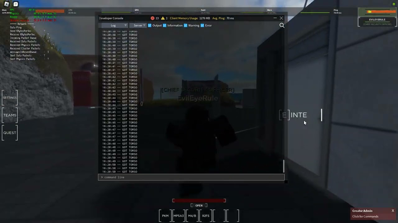 lastly here is me walking around with ABSOLUTELY no remote events being fired, and my FPS being uncapped, as you can see the game continues to think I am spamming remote events