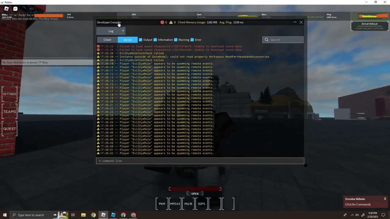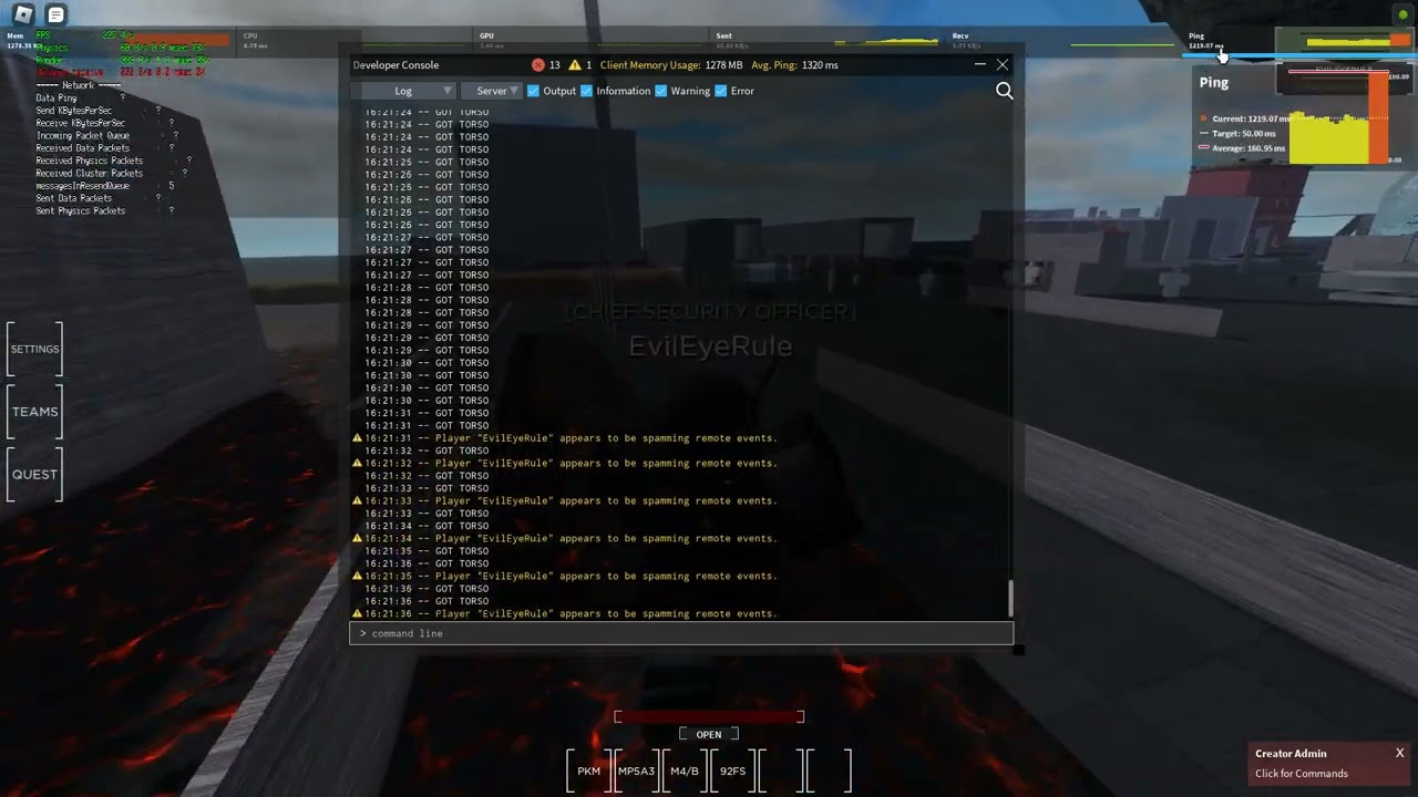 This issue started a few months ago where I use animation event markers to make right/left footstep sounds directly under a foot and fire a remote to the server to allow other players to hear that same sound, this would fire at a rate of about 1-2 per second at its fastest, but it triggered roblox’s rate limiting and continuously say in the server developer console ‘Player “EvilEyeRule” appears to be spamming remote events’ and makes the ping skyrocket until you stop moving. From this I disabled footsteps from replicating to other players all together and it seemed to resolve the issue… until recently. Now whenever anyone walks with an FPS unlocker enabled the lag will skyrocket, despite the remote events not firing. I even disabled EVERY SINGLE remote event in the game from firing and sure enough when I move around, the server will say I am spamming remote events.